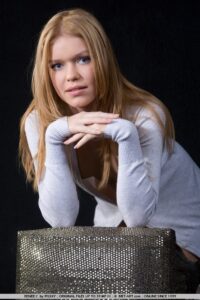Renee, en un cardigan blanc i una gran quantitat de cuixes, Renee emet un encantador i despreocupat amb la seva refina i posicions subtilment eròtiques.