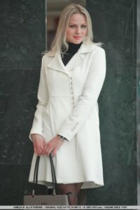 Amelia calenta confiada, luxosa i ardent es planteja com un professional davant de la càmera amb les sabates d’estil negre i el cos pàl·lid cremós.