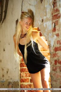 Les ruïnes de maó donen un bon contrast amb l’atractiu juvenil de Silvia ' amb el seu somriure brillant i vivac i la seva construcció atlètica.
