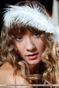 Lucy és una nina Budoir, el seu cos petit i delicat amb una llenceria pura, amb els seus aspectes innocents adorables, petits pits i cames llargues i sexy.