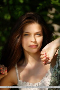 La càlida llum del sol daurada i la frondosa i verda vegetació s’afegeix a Liza ' S Allure fresc i juvenil, mentre mostra la seva bellesa natural amb posicions encantadores i despreocupades.