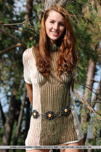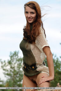 La ubicació exterior exòtica atractiva per una vista igualment espectacular d’una deessa, banyar -se i descansar desinhibit entre l’herba verda exuberant, el riu fresc i els arbres gnarly.