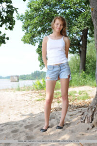 Sota un arbre alt i alt, Eriska es va estendre descaradament les cames i li molesta els detalls íntims amb posicions eròtiques i obertes.