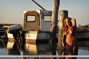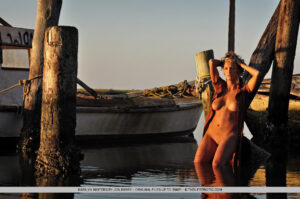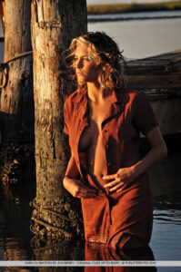 Marily es basa en la resplendor daurada del sol de la tarda, mentre salva un cop del seu cigarret, mostrant la seva elegant i confiada atractiva.
